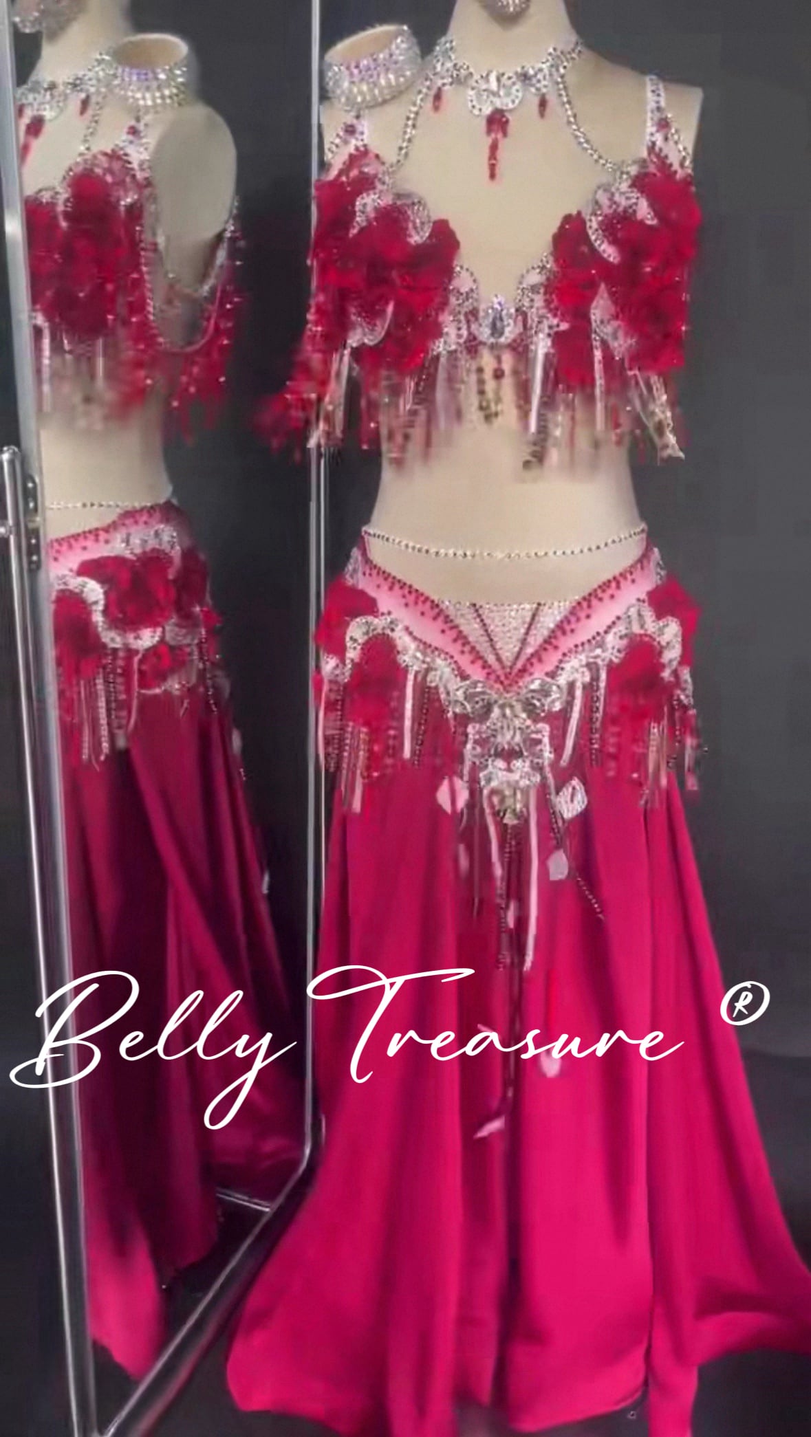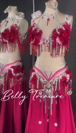 衣装には立体のアクセサリーが輝いてますオーダーメイドベリーダンス衣装です。