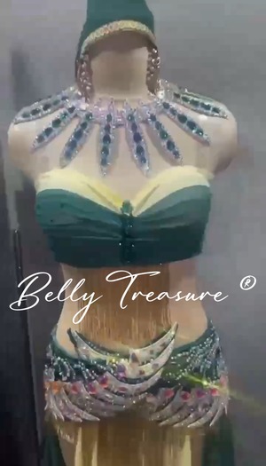衣装には立体のアクセサリーが輝いてますオーダーメイドベリーダンス衣装です。