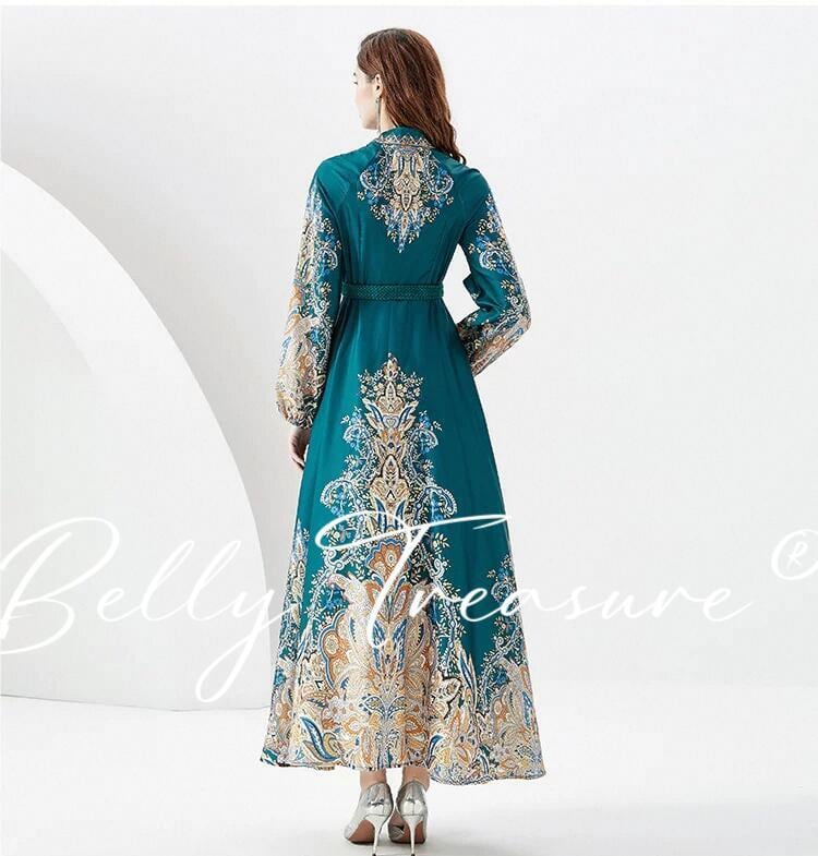 ベリーダンス 前開き ガラベーヤ ワンピース ベルト付き グリーンGZOM-001-202504