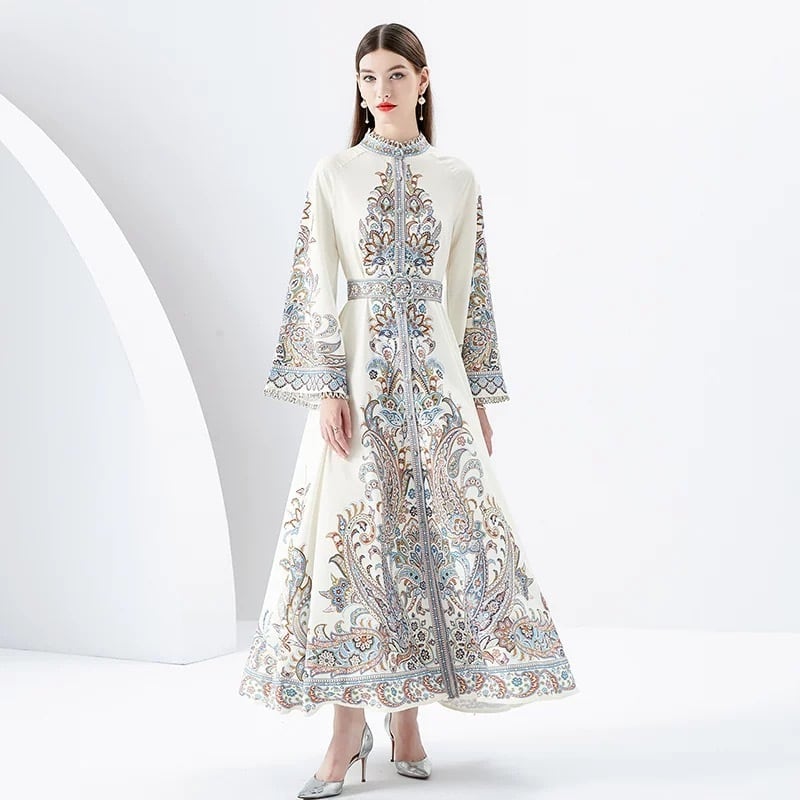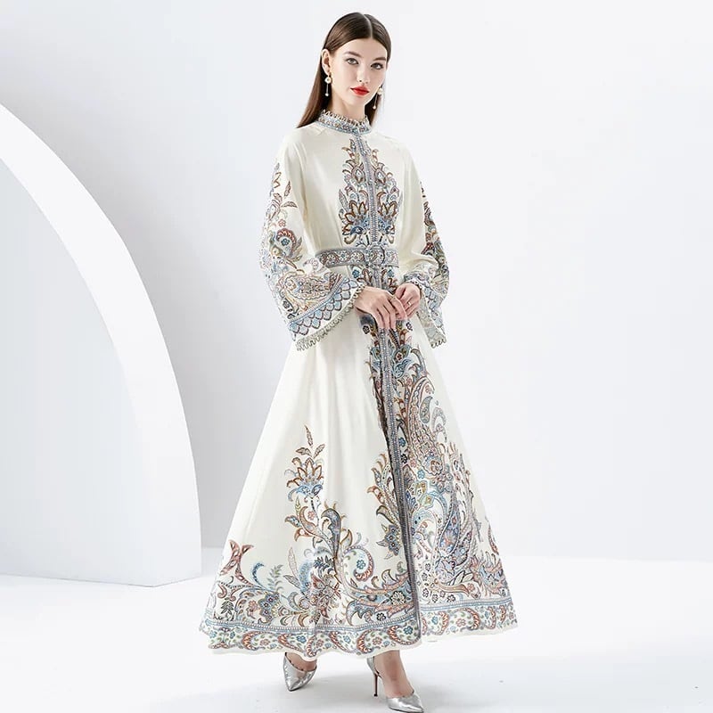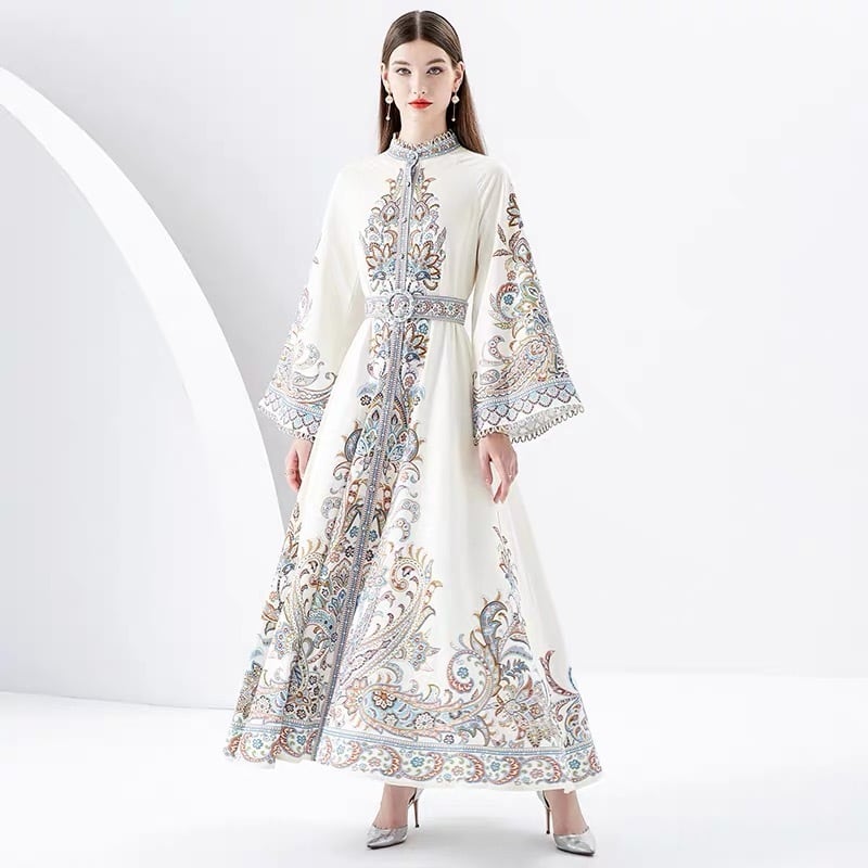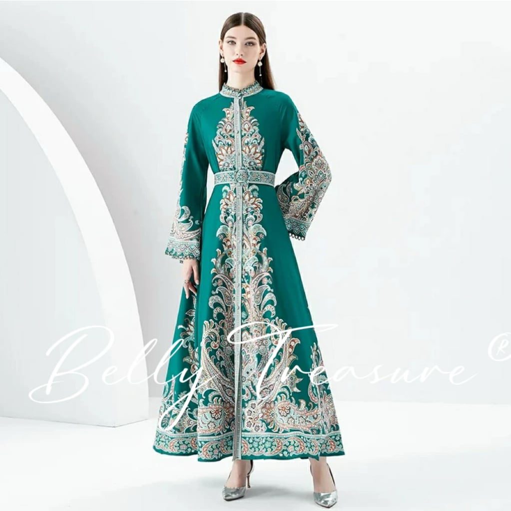 オリエンタル衣装の上にも羽織れる、前開きガラベーヤワンピースが入荷。