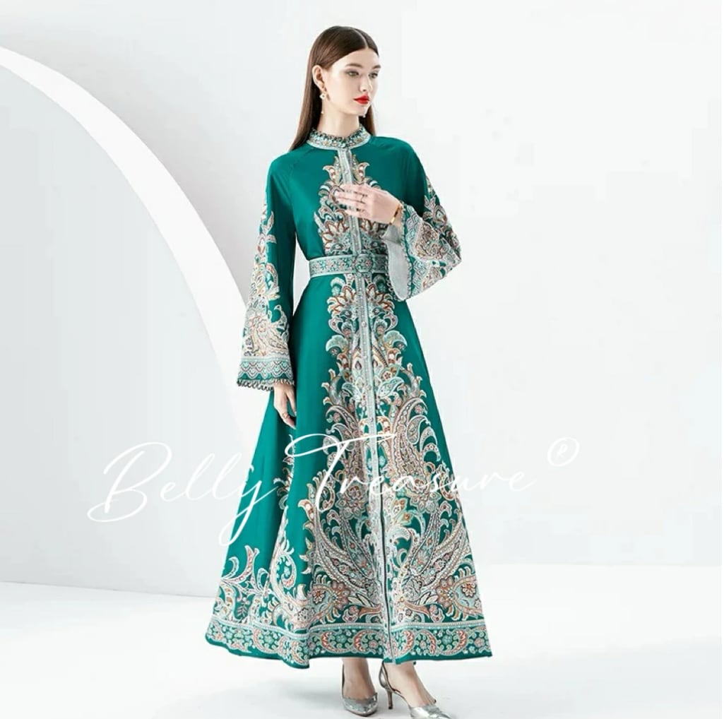 ガラベーヤ ワンピース ベルト付き グリーン GZOM-001-202506