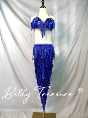 衣装には立体のアクセサリーが輝いてますオーダーメイドベリーダンス衣装です。