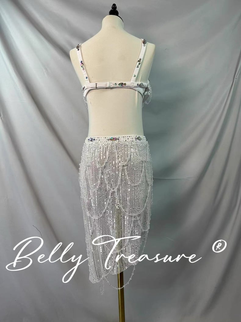 衣装には立体のアクセサリーが輝いてますオーダーメイドベリーダンス衣装です。