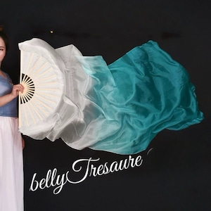 左右2本シルクファンベール ホワイト/ ターコイズ グリーン YD 202509