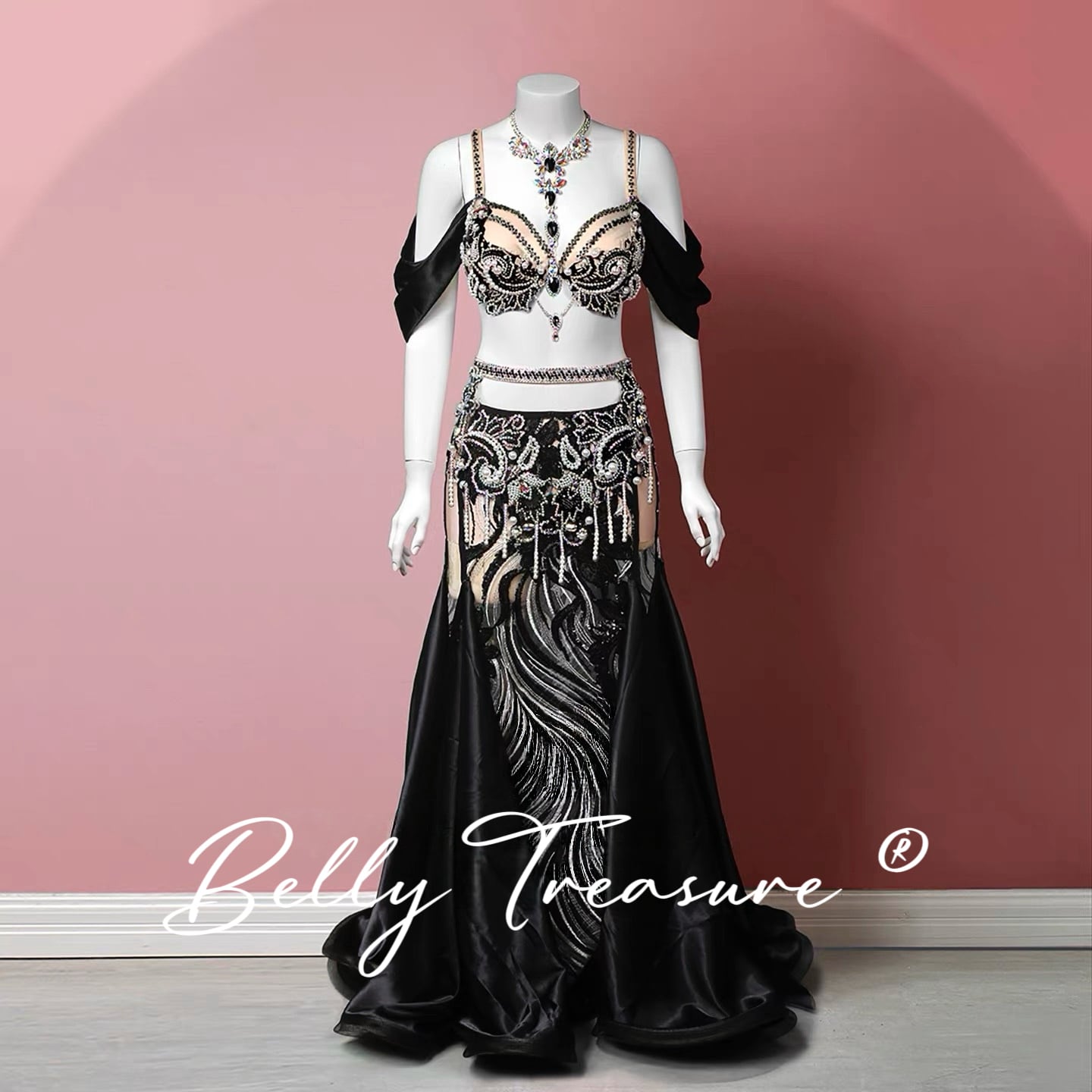 衣装には立体のアクセサリーが輝いてますオーダーメイドベリーダンス衣装です。