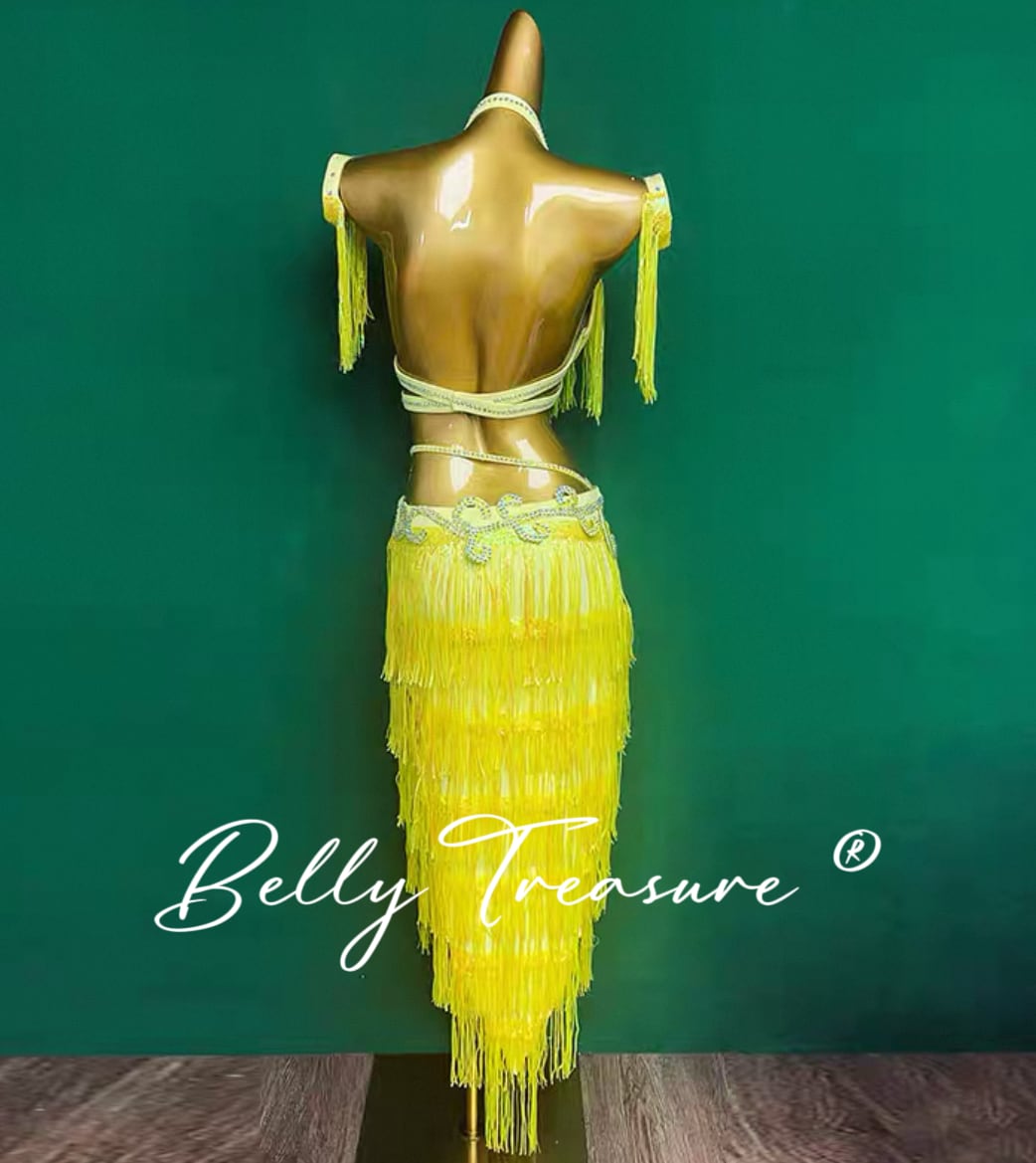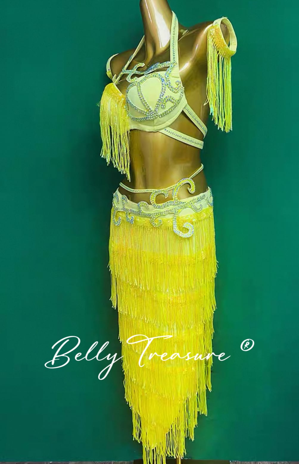 衣装には立体のアクセサリーが輝いてますオーダーメイドベリーダンス衣装です。