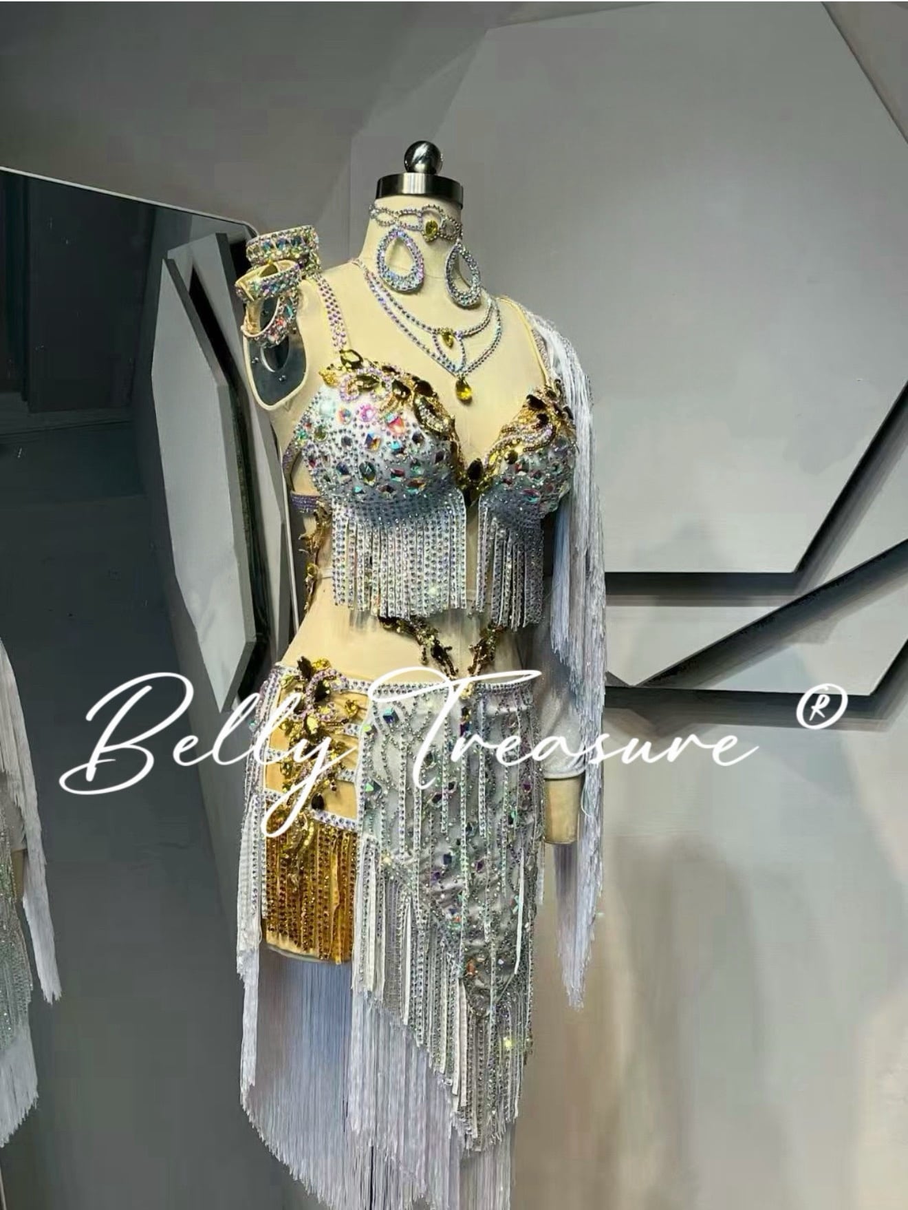 衣装には立体のアクセサリーが輝いてますオーダーメイドベリーダンス衣装です。