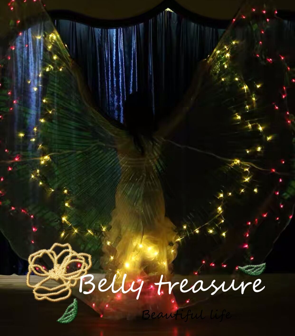衣装には立体のアクセサリーが輝いてますオーダーメイドベリーダンス衣装です。