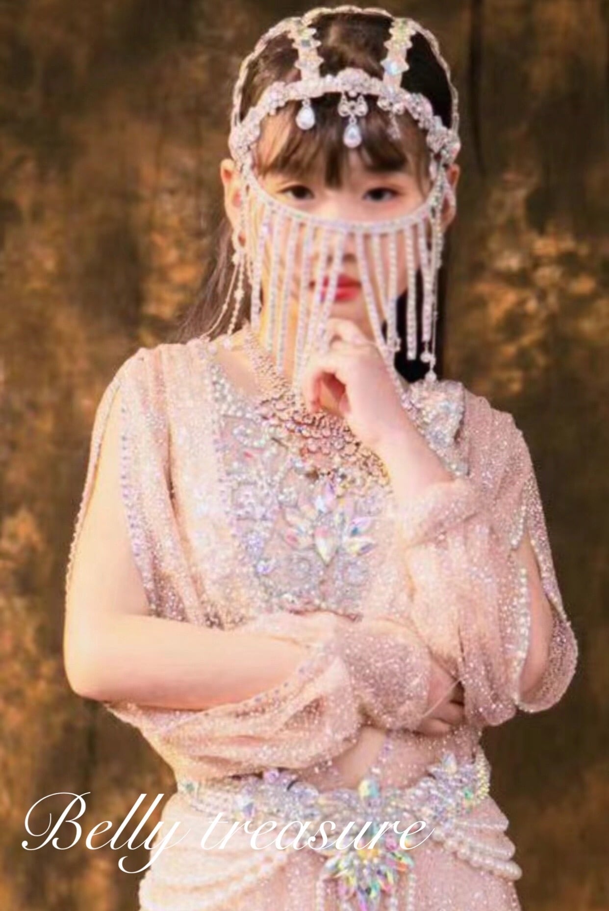 衣装には立体のアクセサリーが輝いてますオーダーメイドベリーダンス衣装です。