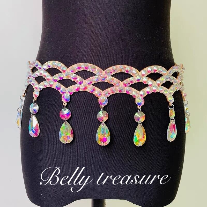 衣装には立体のアクセサリーが輝いてますオーダーメイドベリーダンス衣装です。