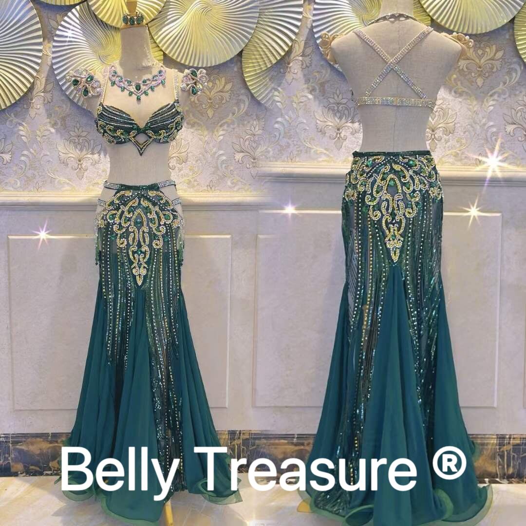 衣装には立体のアクセサリーが輝いてますオーダーメイドベリーダンス衣装です。