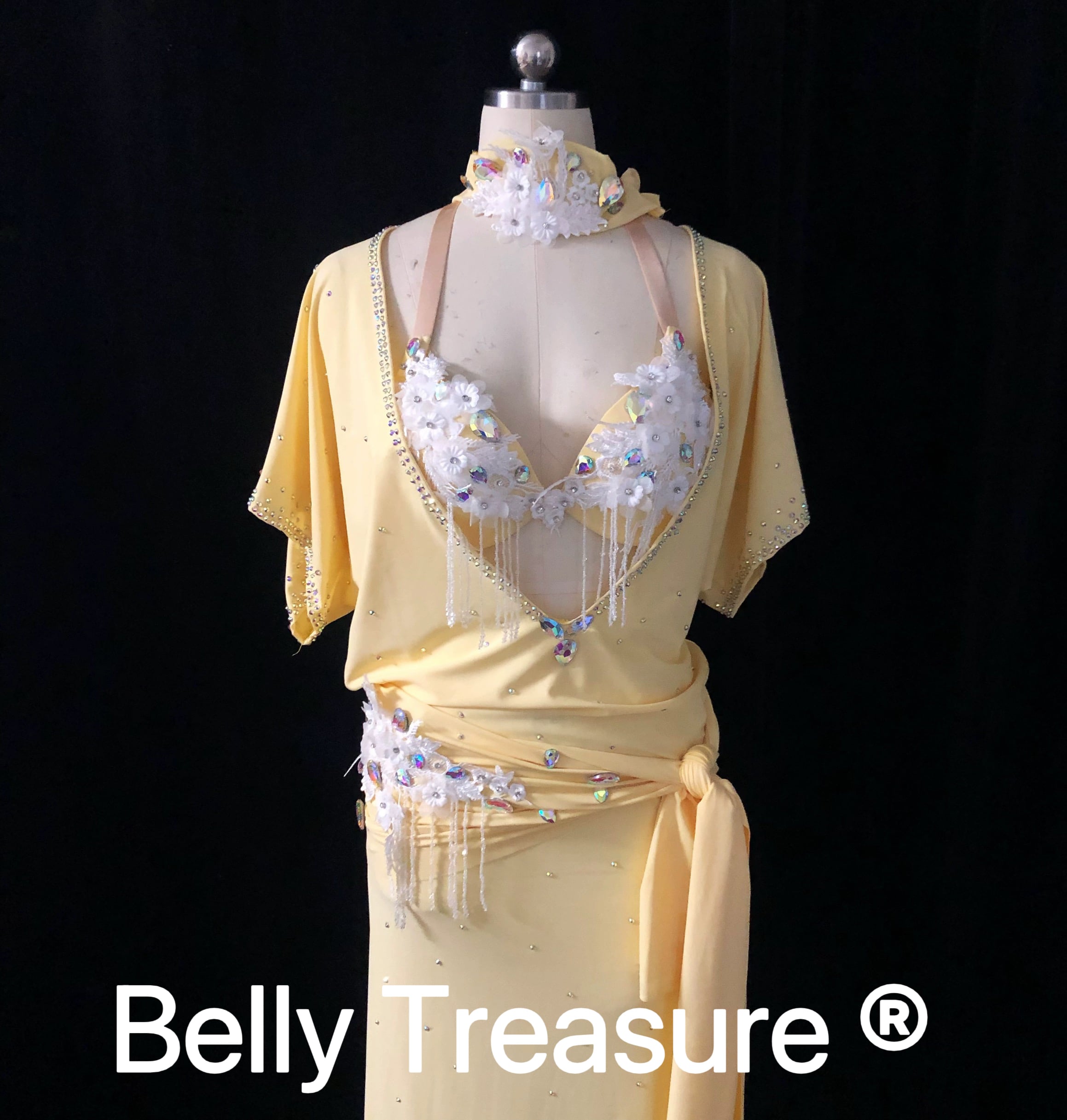 衣装には立体のアクセサリーが輝いてますオーダーメイドベリーダンス衣装です。