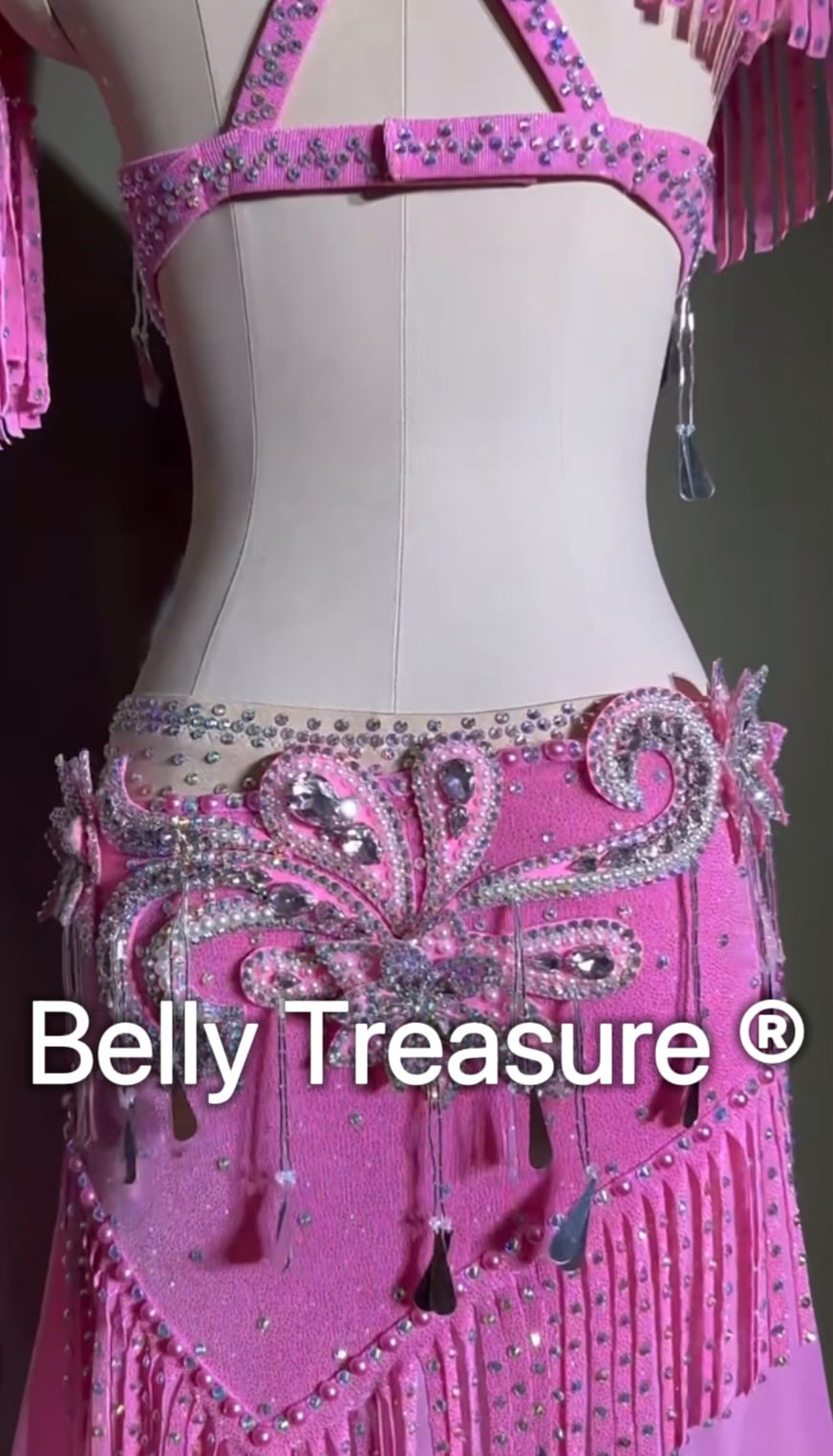 衣装には立体のアクセサリーが輝いてますオーダーメイドベリーダンス衣装です。