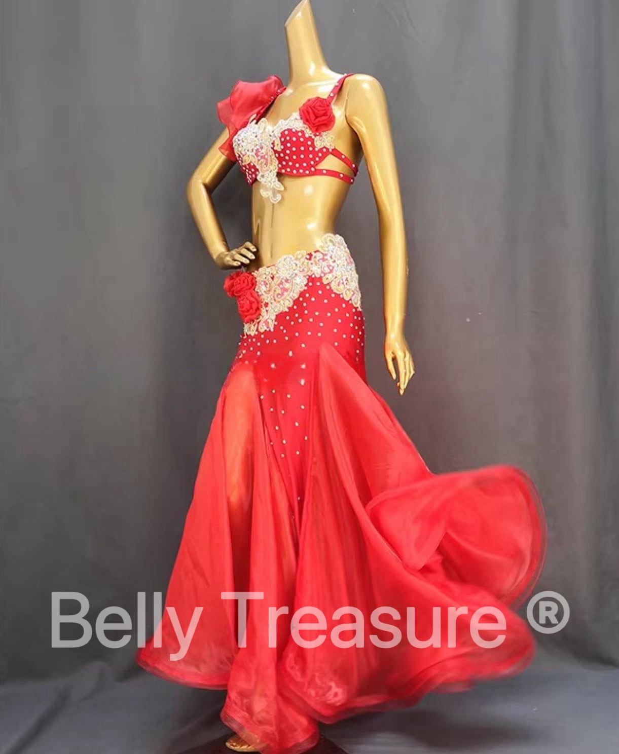 ベリーダンス衣装 レッド/ホワイト XXJP TF2052 202411