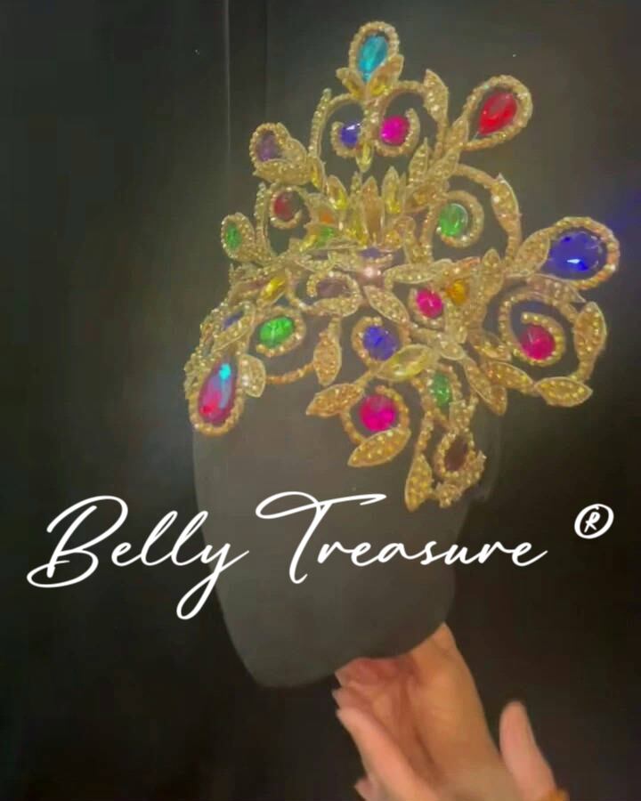 衣装には立体のアクセサリーが輝いてますオーダーメイドベリーダンス衣装です。
